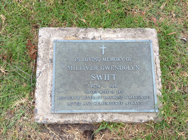 | Swift | Milliver Gwendolyn | photo | 1048 | 1924y | 1991y | w/o Les, m/o Beverley, Raymond & Margaret | ||