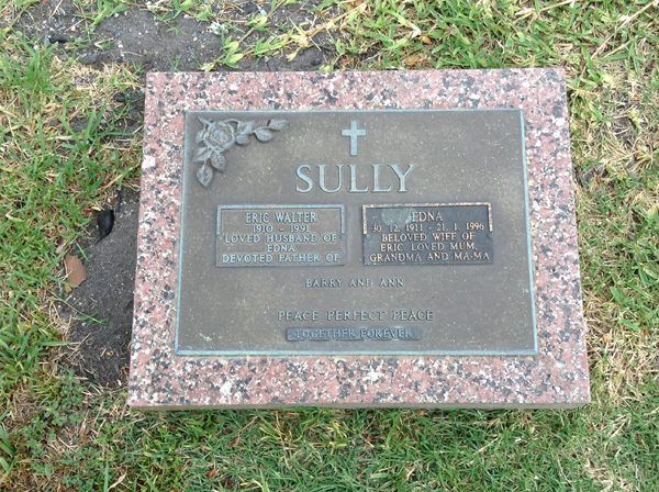 | Sully | Eric Walter | photo | 1129 | 1910y | 1991y | h/o Edna, f/o Barry & Ann | ||