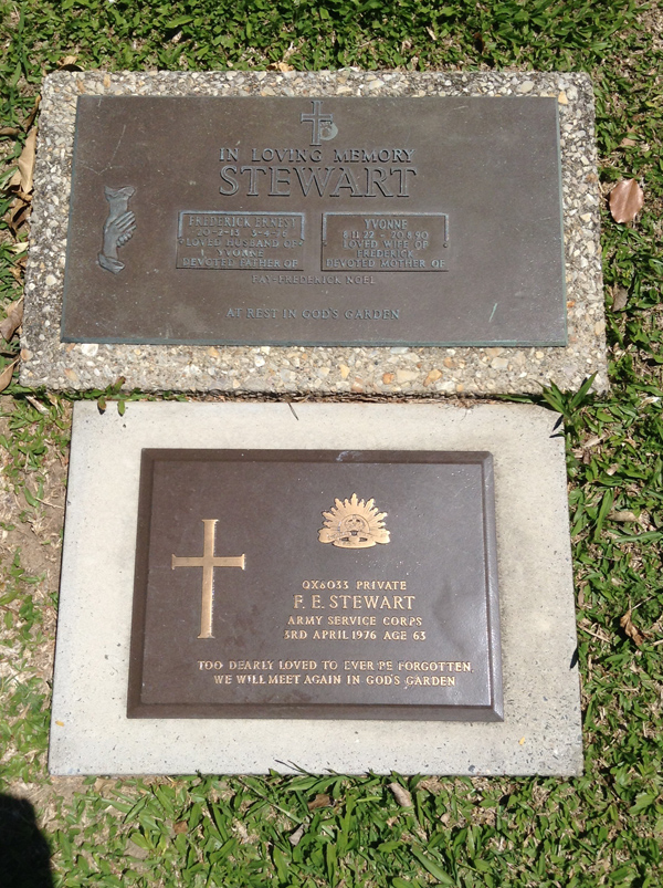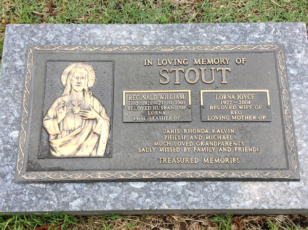 | Stout | Reginald William | photo | 2621 | 17/05/1921 | 21/10/2001 | h/o Lorna, f/o Janis, Rhonda, Kalvin, Phillip & Michael | ||