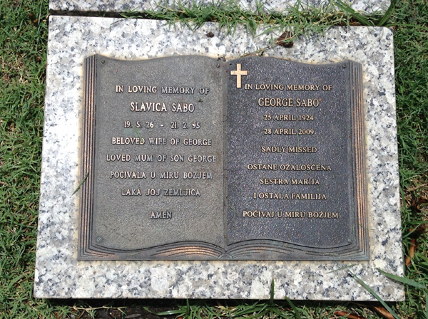 | Sabo | Slavica | photo | 2874 | 19/05/1926 | 21/02/1995 | w/o George, m/o George | ||