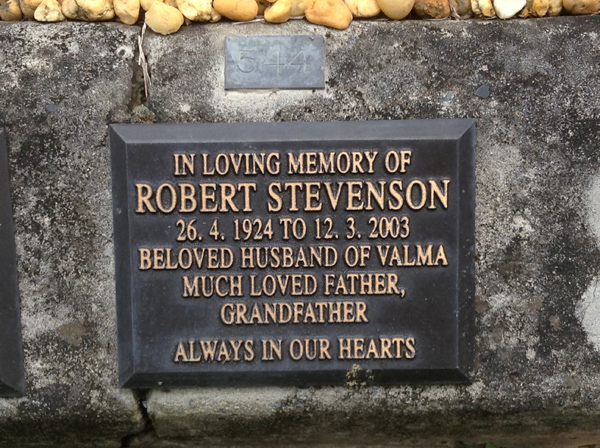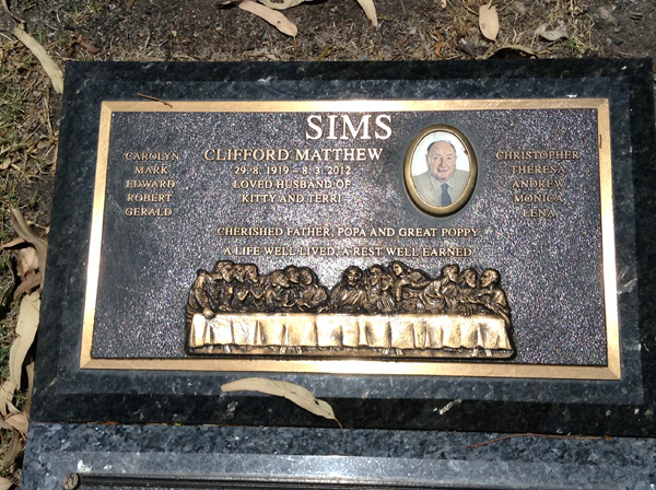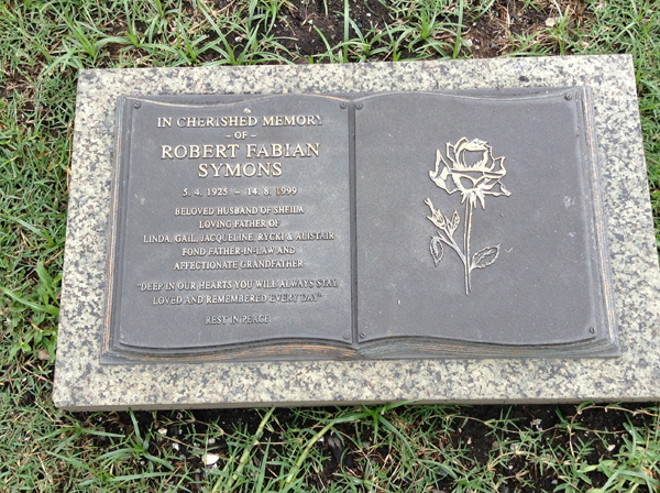 | Symons | Robert Fabian | photo | 3885 | 5/04/1925 | 14/08/1999 | h/o Sheila, f/o Linda, Gail, Jacqueline, Rycki & Alistair | ||
