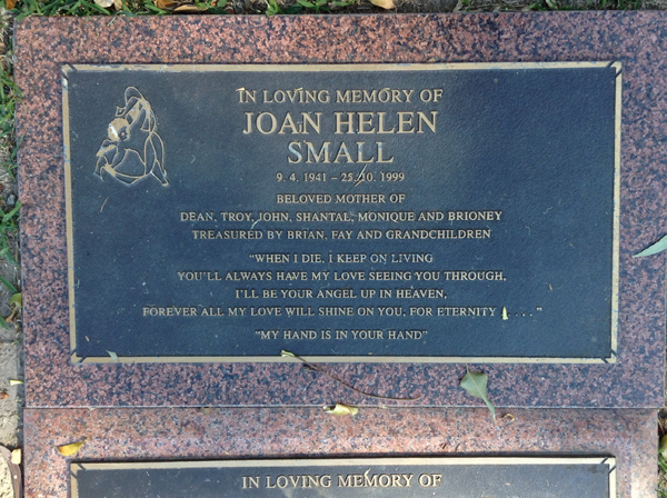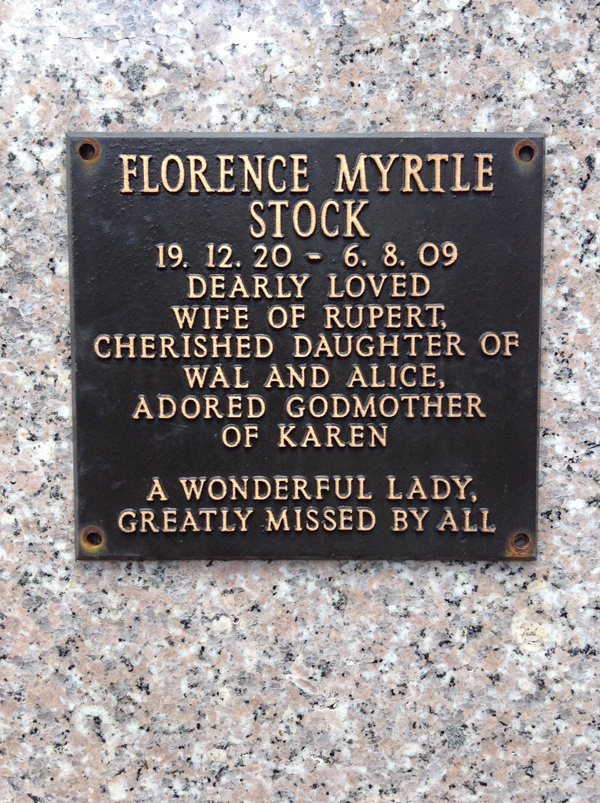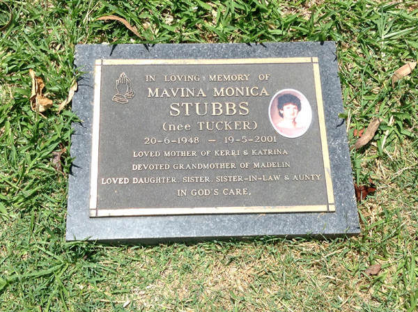 | Stubbs | Mavina Monica | photo | 2322 | 20/06/1948 | 19/05/2001 | nee Tucker, m/o Kerri & Katrina, G/m of Madelin | ||