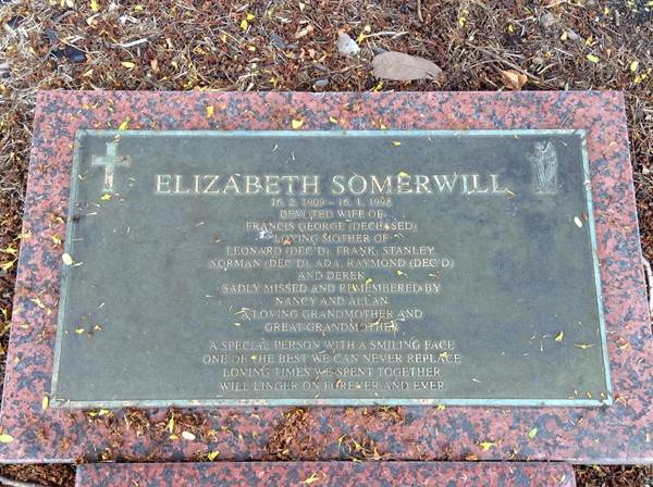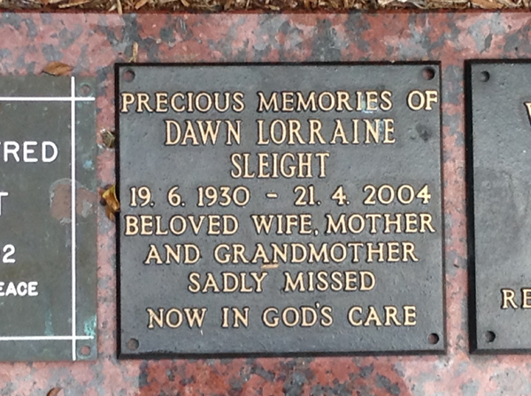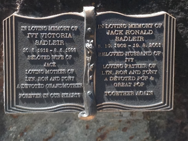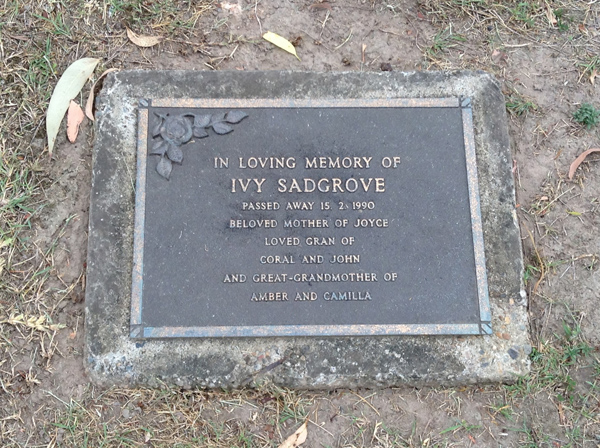 | Sadleir | Ivy Victoria | photo | 5722 | 20/05/1912 | 8/05/1998 | W/o Jack, m/o Lyn, Ron & Tony | ||