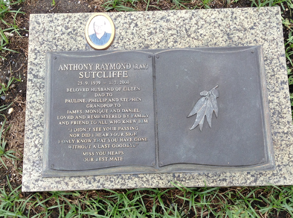| Sutcliffe | Anthony Raymond (Ray) | photo | 3867 | 25/09/1939 | 1/07/2000 | h/o Eileen, f/o Pauline, Phillip & Stephen, G/f of James,, Monique & Daniel | ||
