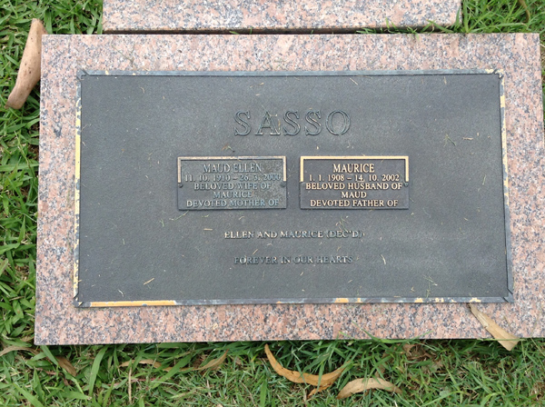 | Sasso | Maud Ellen | photo | 3041 | 11/10/1910 | 26/03/2000 | w/o Maurice, m/o Ellen & Maurice (Dec.) | ||