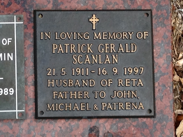 | Scanlan | Patrick Gerald | photo | 3264 | 21/05/1911 | 16/09/1997 | h/o Reta, f/o John, Michael & Patrena | ||