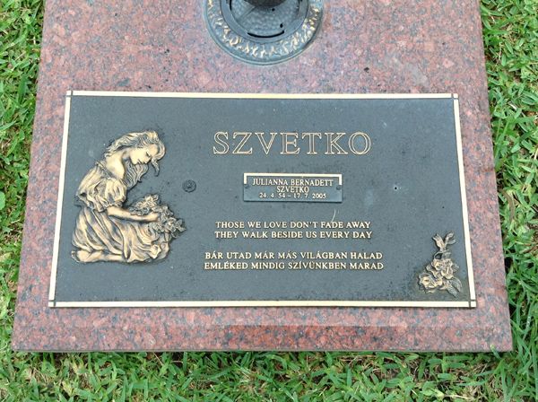 | Szigeti | Bronwyn Anne | photo | 1606 | 25/06/1959 | 12/11/1990 | w/o Attila (Chris), m/o Stuart | ||