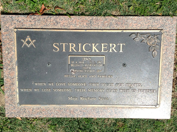 | Strickert | Erwin | photo | 4341 | 10/04/1910 | 11/01/1997 | H/o Edith f/o Helga & Alice | ||