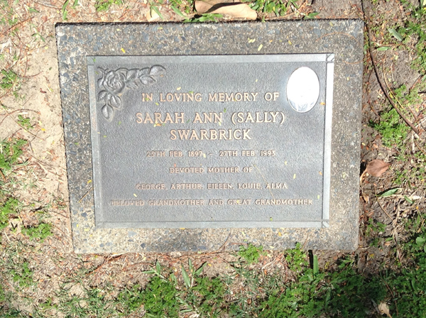 | Swarbrick | Sarah Ann (Sally) | photo | 4483 | 25 Feb 1897 | 27/02/1993 | M/o George, Arthur, Eileen, Louie & Alma | ||