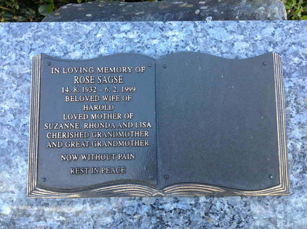 | Sagse | Rose | photo | 4838 | 14/08/1932 | 6/02/1999 | W/o Harold m/o Suzanne, Rhonda & Lisa | ||