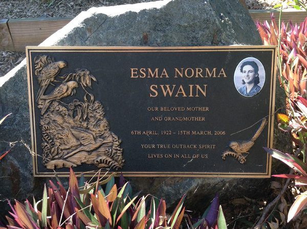 | Swain | Esma Norma | photo | 527 | 6/04/1922 | 15/03/2006 | w/o Chas | ||