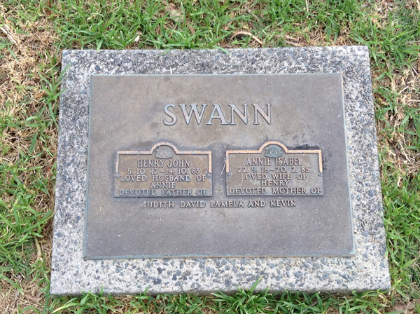 | Swann | Annie Isabel | photo | 939 | 22/09/1918 | 20/02/1985 | h/o Valorie | ||