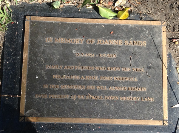 | Sands | Joanne | photo | 109 | 12/07/1924 | 8/07/2010 | w/o John, m/o Joyce & Jack | ||