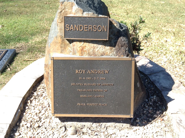 | Sanderson | Roy Andrew | photo | 414 | 21/04/1921 | 2/07/2004 | f/o Diana & Peter | ||