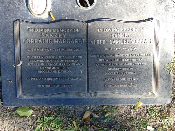 | Sankey | Albert Samuel William | photo | 74 | 10/12/1932 | 25/02/2003 | m/o Tracey & Robyn | ||