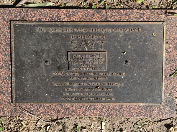 | Savy | Pastor P Gerald | photo | 99 | 9/04/1936 | 29/12/1998 | |||