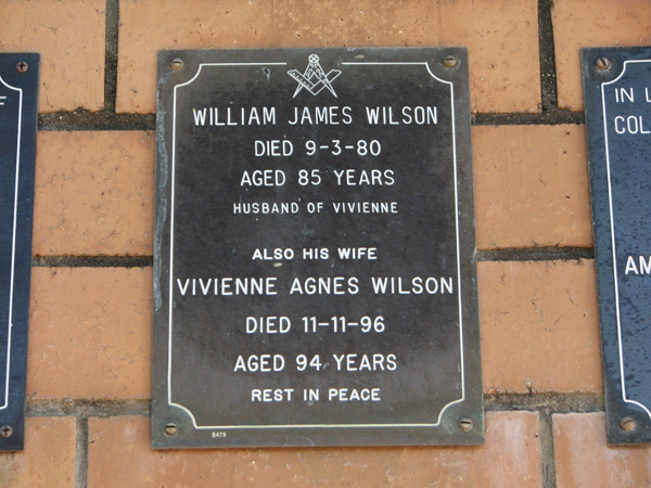 | Wilson | William James | photo | 9/03/1980 | 85 | h/o Vivienne | ||