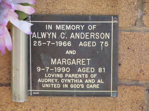 | Anderson | Alwyn C | photo | 25/07/1966 | 75 | f/o Audrey, Cynthia & Al | ||