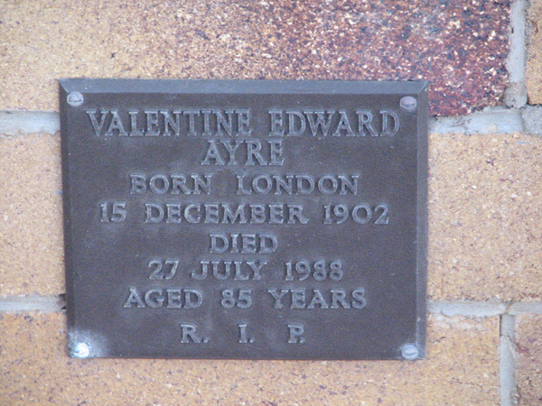 | Ayre | Valentine Edward | photo | 15/12/1902 | 27/07/1988 | 85 | Born London | |