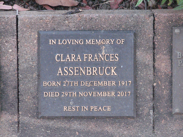 | Assenbruck | Clara Frances | photo | 27/12/1917 | 29/11/2017 | |||