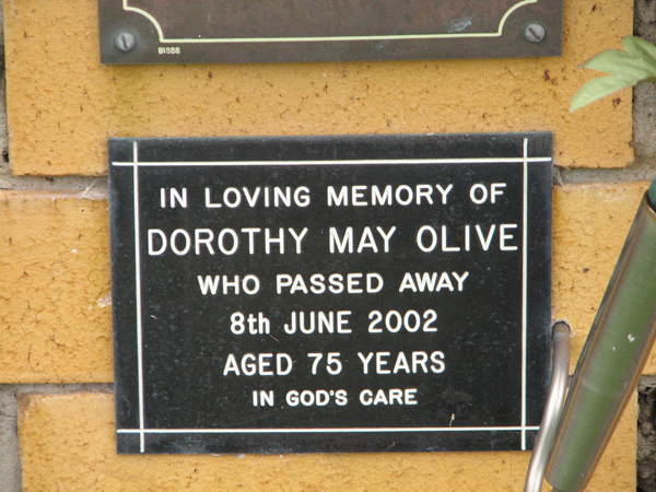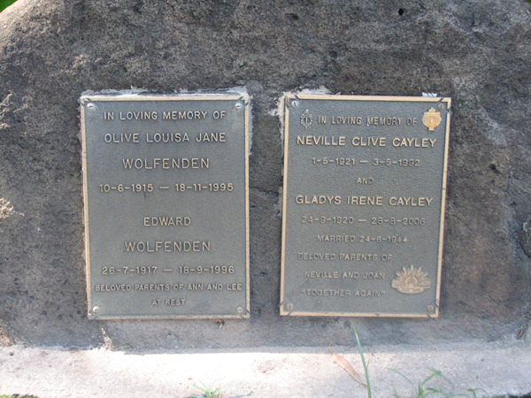 | Wolfenden | Olive Louisa Jane | photo | 10/06/1915 | 18/11/1995 | m/o Ann & Lee | ||