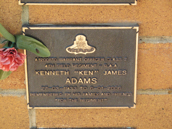 | Adams | Kenneth 'Ken' | photo | 27/03/1933 | 6/01/2006 | A1200170 Warrant Officer Class 2 4th Field Reg RAA | ||