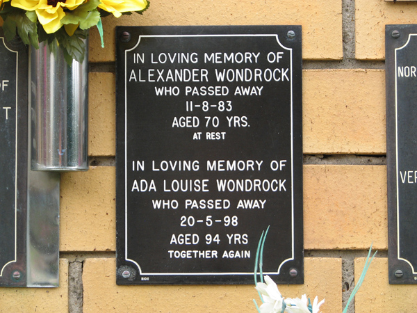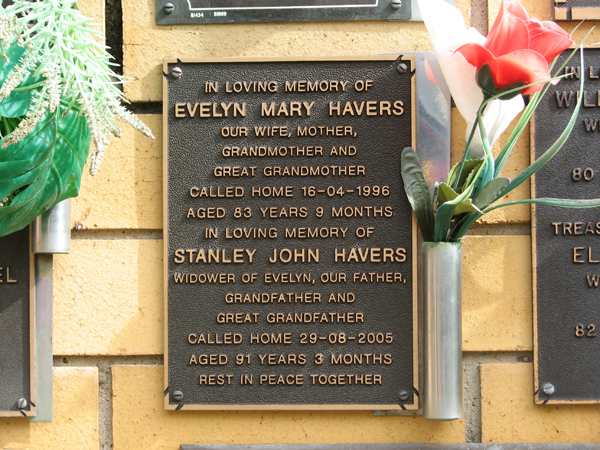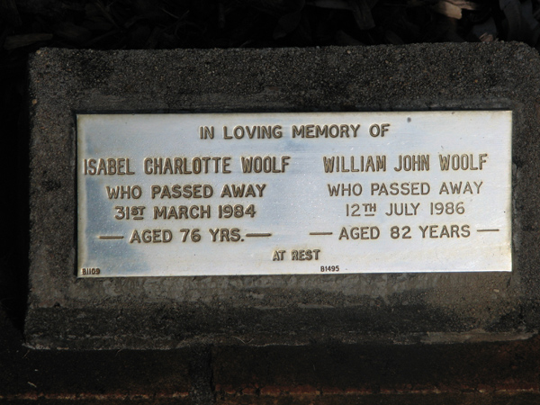 | Woolley | Evelyn | photo | 7/09/2000 | 86 | w/o Edward Woolley | ||