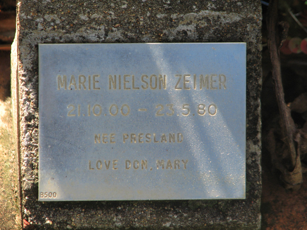 | Zeimer | Marie Nielson | photo | 21/10/2000 | 23/05/1980 | nee Presland | ||