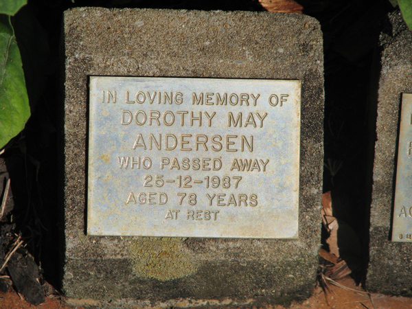 | Andersen | Dorothy May | photo | 25/12/1987 | 78 | |||