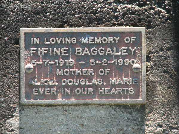 | Baggaley | Fifine | photo | 5/07/1919 | 6/02/1990 | m/o Alice, Douglas, Marie | ||