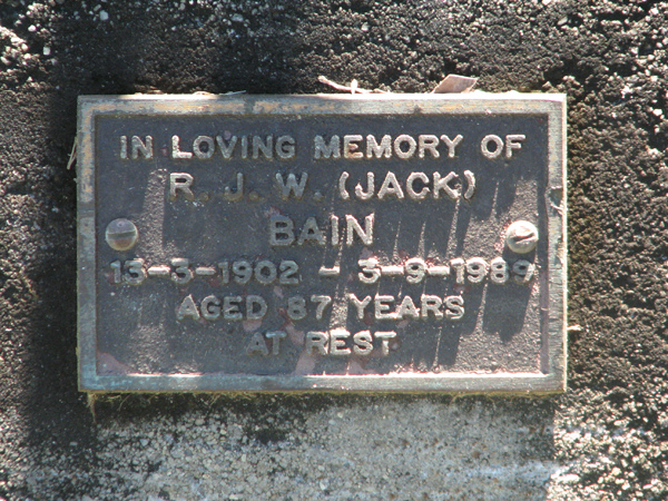 | Bain | R J W 'Jack' | photo | 13/03/1902 | 3/09/1989 | 87 | ||
