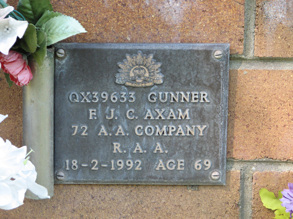 | Axam | F J C | photo | 18/02/1992 | 69 | QX39633 Gunner 72 AA Coy RAA | ||