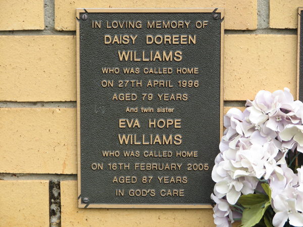 | Williams | Daisy Doreen | photo | 27/04/1996 | 79 | twin sister of Eva | ||