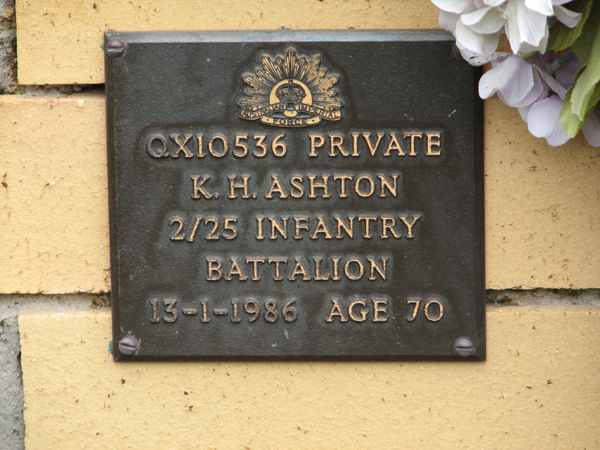 | Ashton | K H | photo | 13/01/1986 | 70 | QX10536 Private 2/25 Infantry Battalion | ||