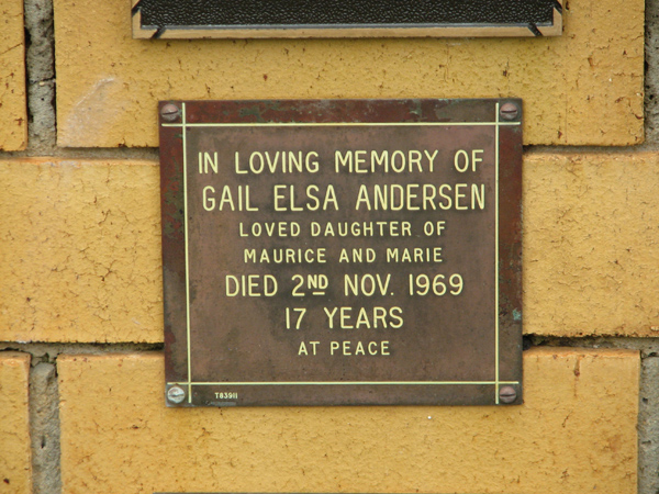 | Andersen | Gail Elsa | photo | 2/11/1969 | 17 | d/o Maurice & Marie | ||
