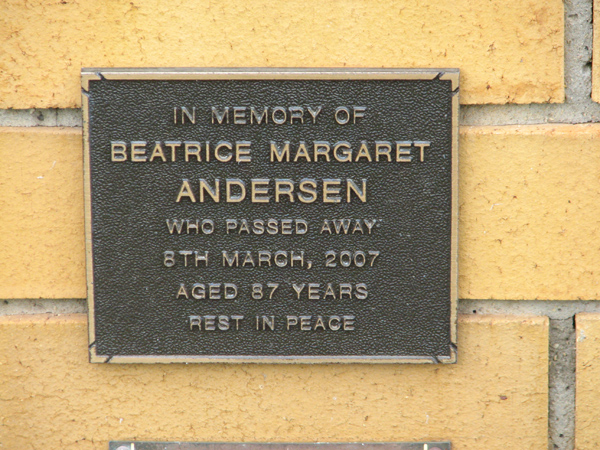 | Andersen | Beatrice Margaret | photo | 8/03/2007 | 87 | |||