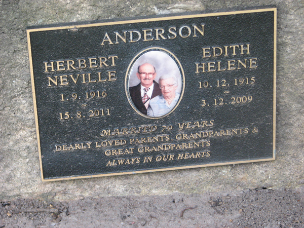 | Anderson | Herbert Neville | photo | 1/09/1916 | 15/08/2011 | married 70 years | ||
