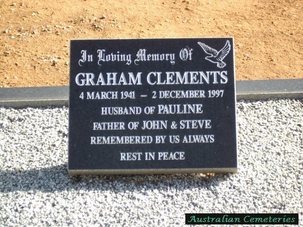 | CLEMENTS | Graham | photo | 4/03/1941 | 2/12/1997 | Wife Pauline | |