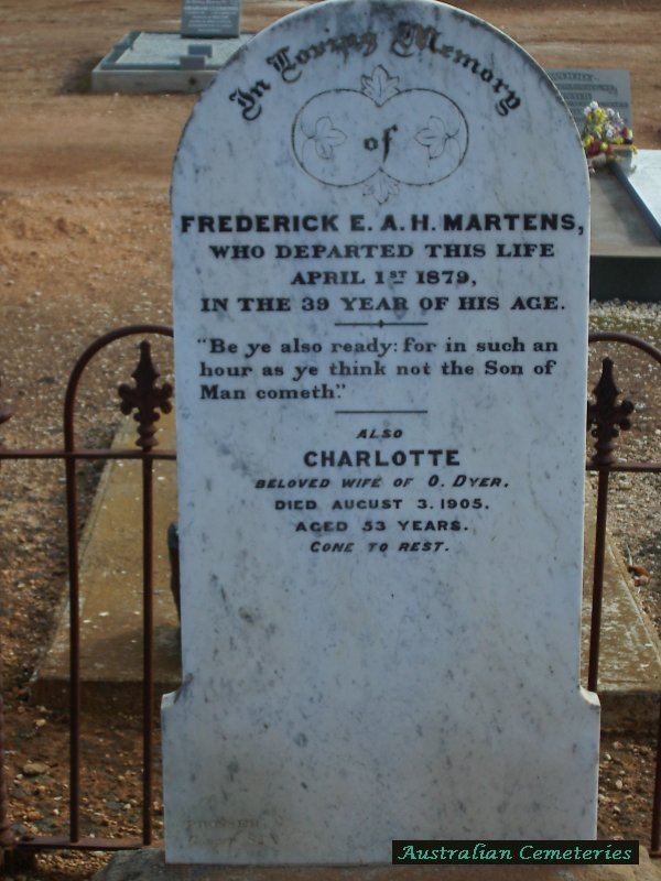 | MARTENS | Charlotte | photo | 3/08/1905 | 53 | Husband O.Dyer | |