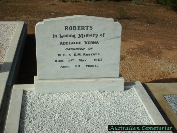 | ROBERTS | Adelaide Verna | photo | 1/05/1967 | 83 | Par W.S&E.M.Roberts | |