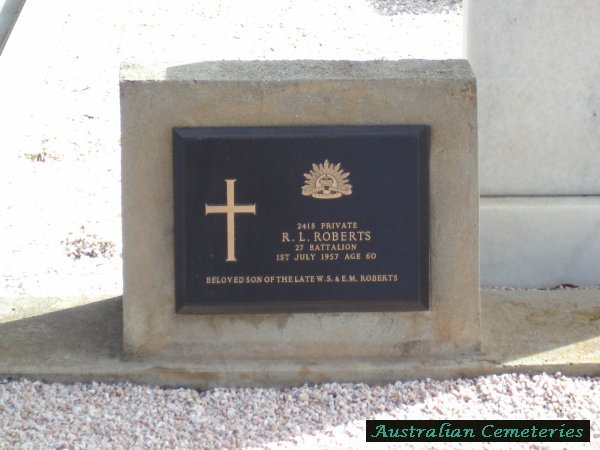| ROBERTS | R.L | photo | 1/07/1957 | 60 | Par W.S.&E.M.Roberts | |