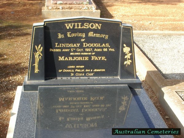 | WILSON | Lindsay Douglas | photo | 5/10/1997 | 66 | Wife Majorie Faye | |