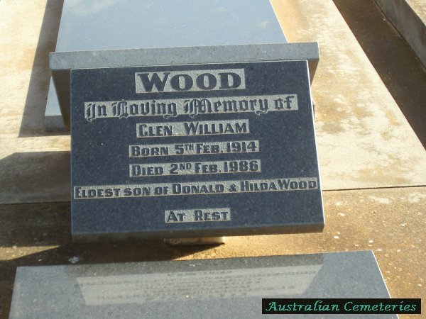 | WOOD | Glen William | photo | 5/02/1914 | 2/02/1986 | Par Hilda &George | |