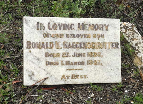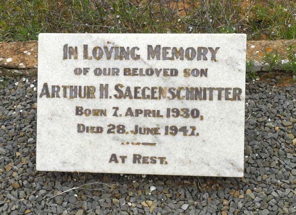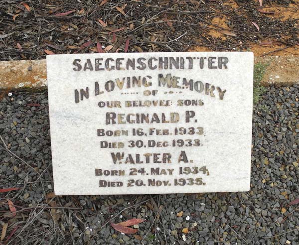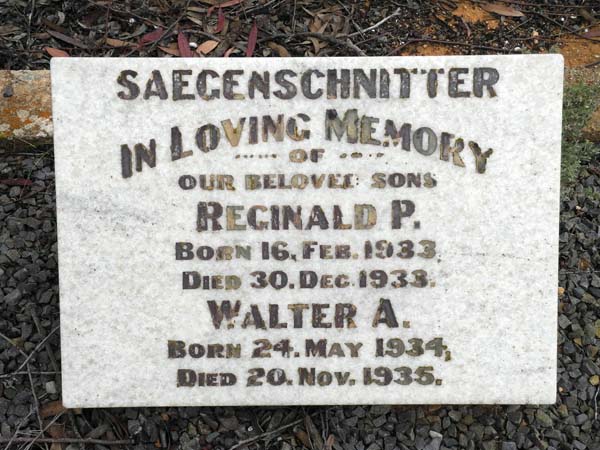 | SAEGENSCHNITTER | Reginald P | photo | 30-12-1933 | Born 16-2-1933. Brother of Walter A | |