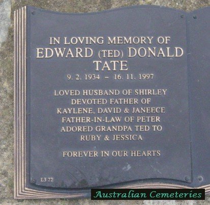 Tate  Edward (Ted) Donald photo   09.02.1934 16.11.1997   w/Shirley HS