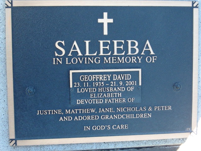 | SALEEBA | Geoffrey David | photo |  | 23/11/1935 | 21/09/2001 |  | Elizabeth |  |