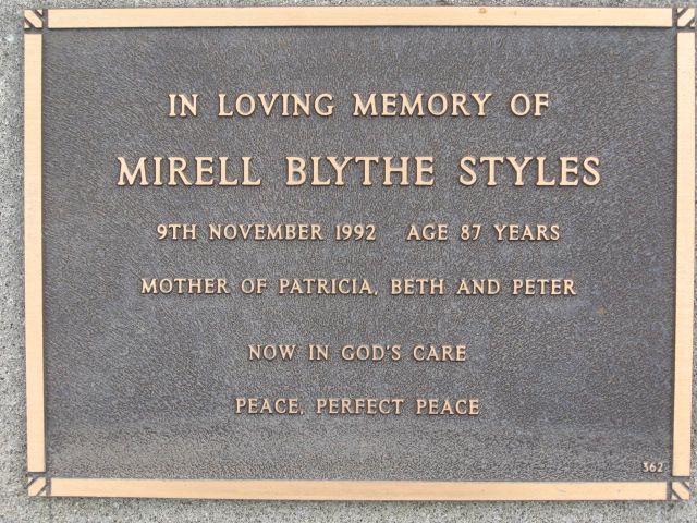 | STYLES | Mirell Blythe | photo |  |  | 9/11/1992 | 87 |  | m/o Patricia,Beth & Peter |