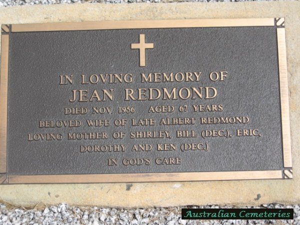 | REDMOND | A.H.(Albert Henry) | photo | photo | 17/4/1954 | 66 | Jean | par William & Eliza. | ||