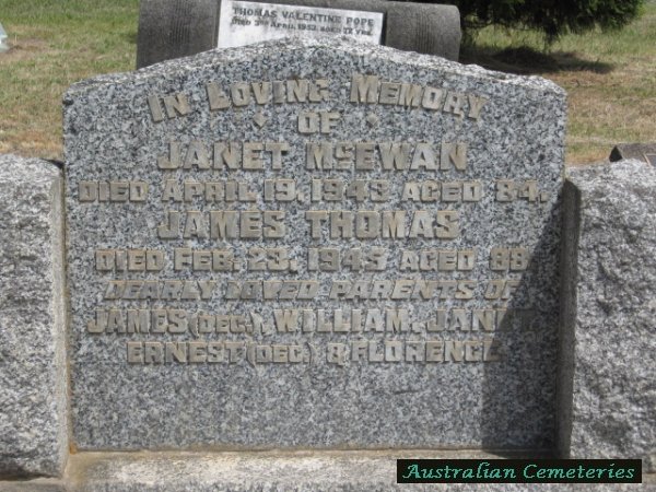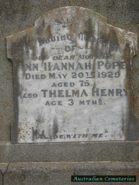 | POPE | Ann Hannah | photo | photo | 20/5/1929 | 75 | par William & Elizabeth Vaux | |||