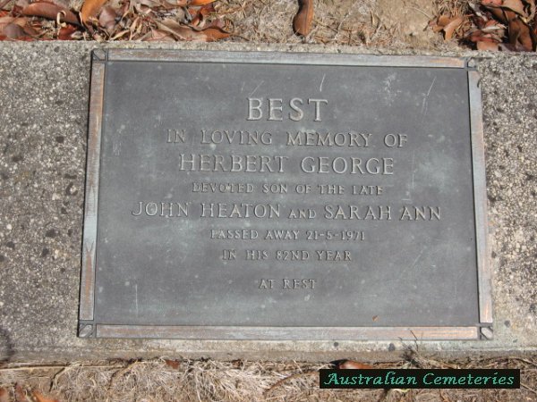 | BEST | Herbert George | photo | 21/5/1971 | 82 | Sarah A. | par John Heaton & Sarah Ann. | |||